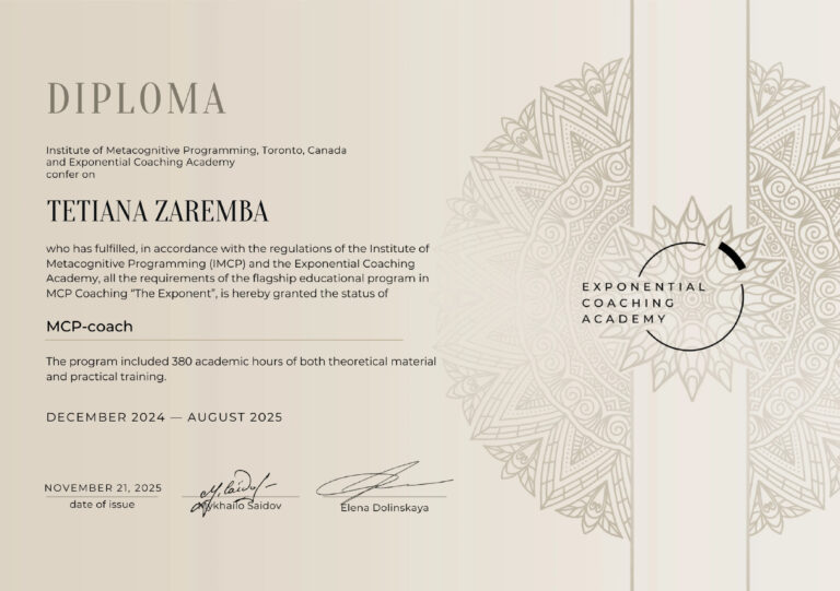 ✔ сертифікований коуч трансформації життя